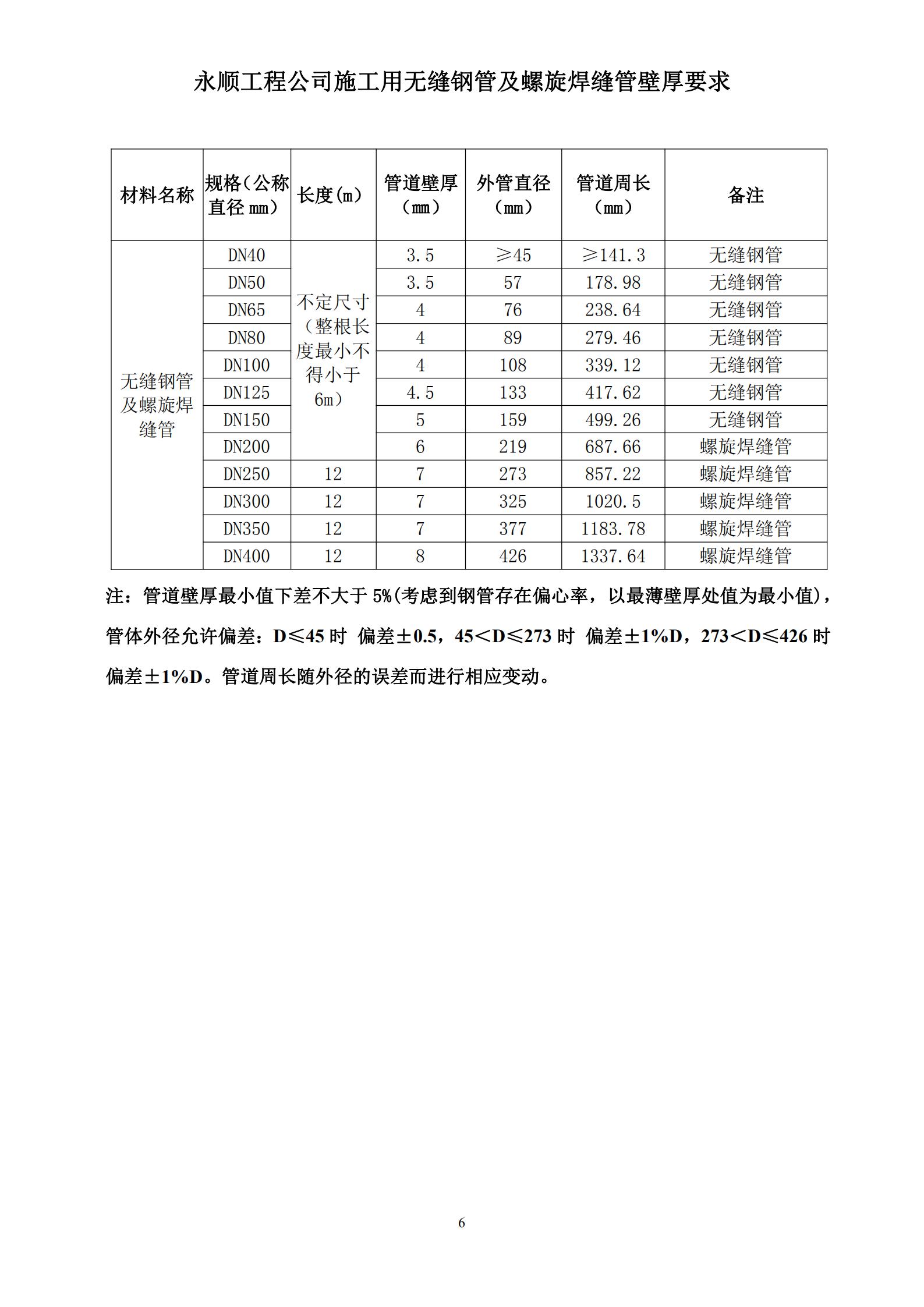 ①無(wú)縫鋼管:采取20#鋼,標(biāo)準(zhǔn)為GB/T17395-2008《無(wú)縫鋼管尺寸、外形、重量及運(yùn)行偏差》、GB/8163《輸送流體用無(wú)縫鋼管》;螺旋鋼管:材質(zhì)為Q235B,標(biāo)準(zhǔn)為GB/T 9711-2017。無(wú)縫鋼管及螺旋鋼管壁厚最小值下差不大于5%,(考慮到鋼管存在偏心率,以最薄壁厚處值為最小值)且不得低于以下企業(yè)標(biāo)準(zhǔn):上海寶鋼集團(tuán)公司、首鋼集團(tuán)、鞍山鋼鐵集團(tuán)公司、武漢鋼鐵(集團(tuán))公司、萊蕪鋼鐵集團(tuán)、濟(jì)南鋼鐵集團(tuán)總公司、攀枝花鋼鐵(集團(tuán))公司、唐山鋼鐵集團(tuán)有限責(zé)任公司、青島鋼鐵控股集團(tuán)有限責(zé)任公司、天津鋼管集團(tuán)有限公司。
